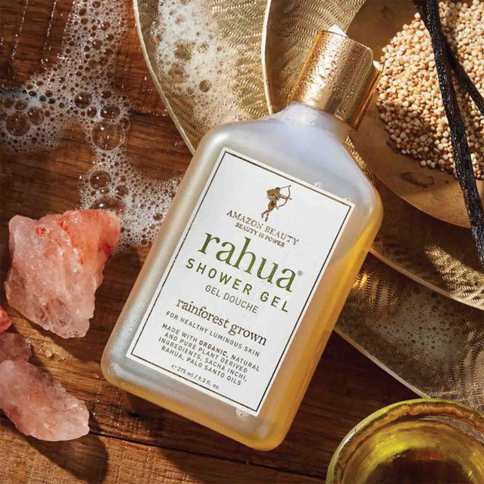 Un moyen simple de faire de votre rituel quotidien un luxe, le gel douche Rahua® nourrit la peau et éveille les sens avec une mousse riche et douce remplie de lavande apaisante, d'eucalyptus édifiante, de vanille douce et de boisé Palo Santo. Les huiles Sacha Inchi et Rahua cultivées dans la forêt tropicale, riches en antioxydants et en acides gras oméga-3 et oméga-9, ainsi que de la vanille biologique remplie de polyphénols anti-âge laissent la peau propre, hydratée, souple et éclatante.